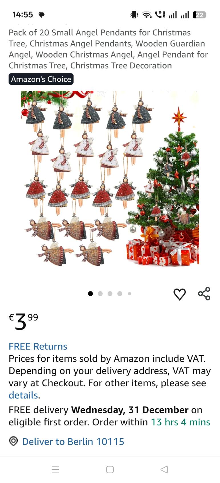 | 3 | 3 | Kleine Engel Anhänger für Weihnachtsbaum | DE | 1225005 |