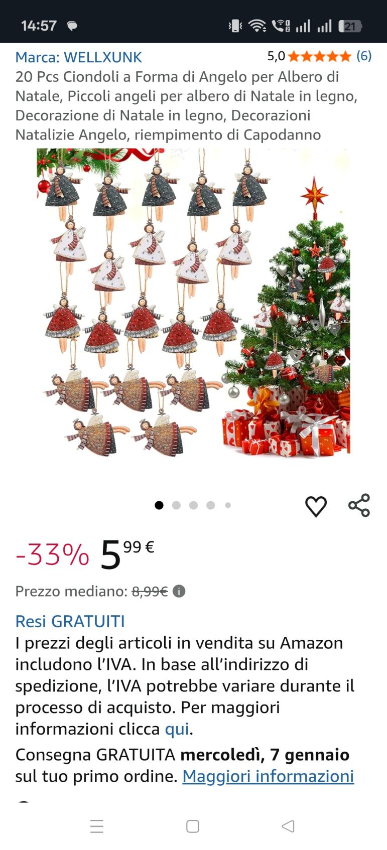| 3 | 3 | 20 Pcs Ciondoli a Forma di Angelo per Albero di Natale | IT | 1225006 |
