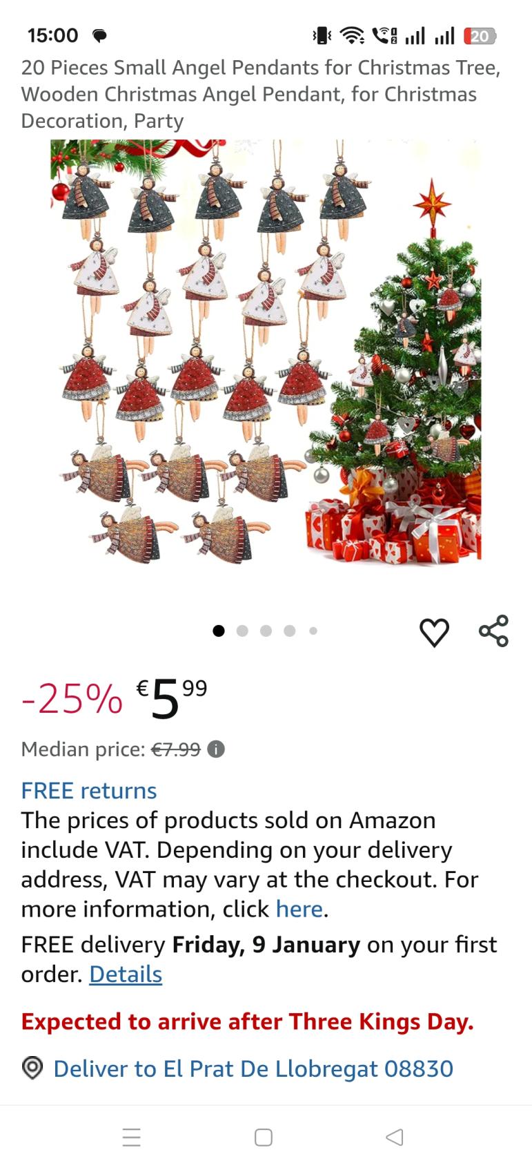 | 3 | 3 | 20 Pcs Ciondoli a Forma di Angelo per Albero di Natale | ES | 1225007 |