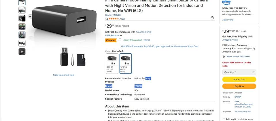 | 1 | 1 | spy camera | USA | 1225021 |