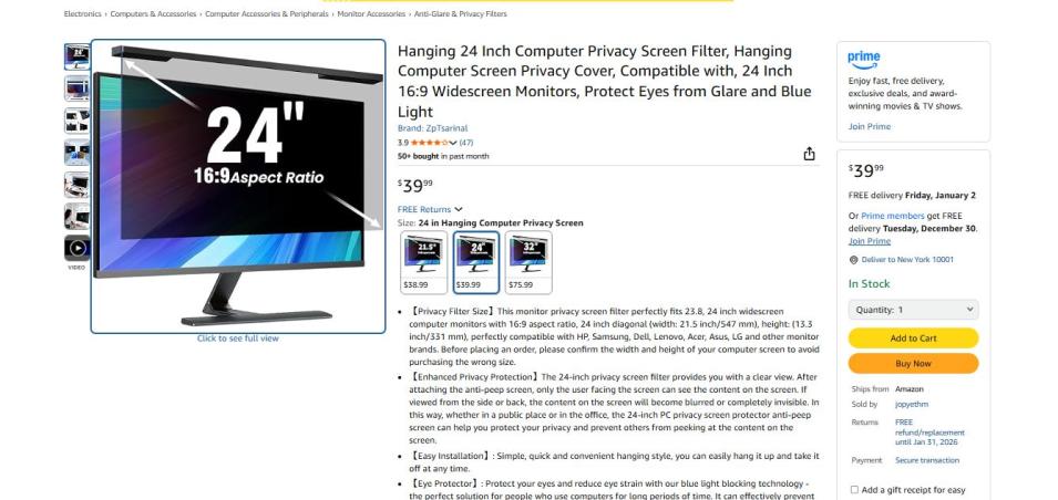 | 1 | 1 | 24 Inch Computer Privacy Screen | USA | 1225026 |