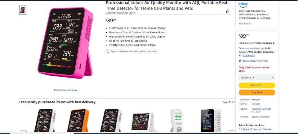 | 4 | 3 | Professional Indoor Air Quality Monitor with AQI | USA | 1225028 |