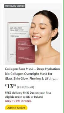 | 1 | 1 | Bio Collagen Overnight Mask 5 Sheets | UK | 1263427 |