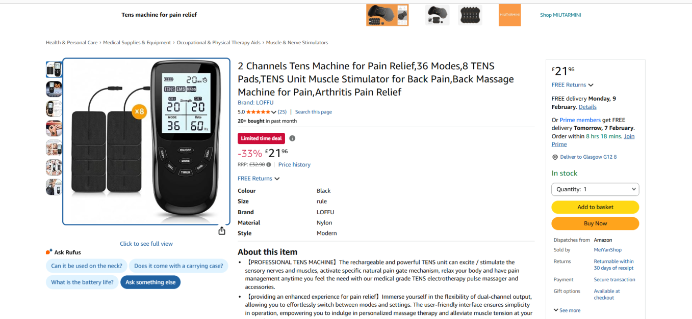| 2 | 2 | Tens Machine for Pain Relief ((3.99£ self pay)) | UK | 1303589 |