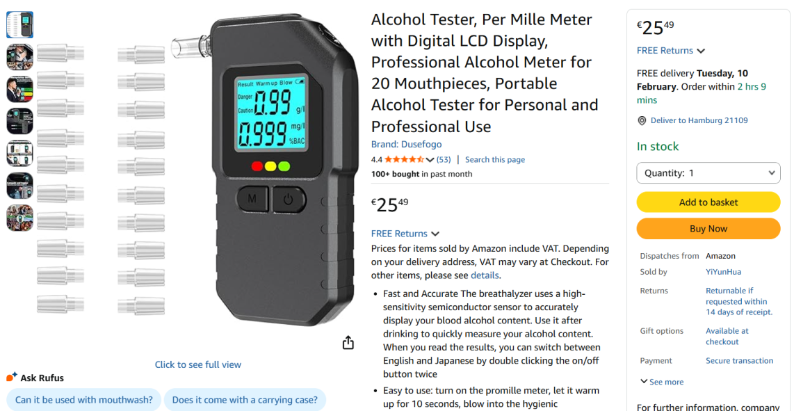 | 2 | 1 | alkoholtester (( provide keyword search screenshot too) | DE | 1303587 |