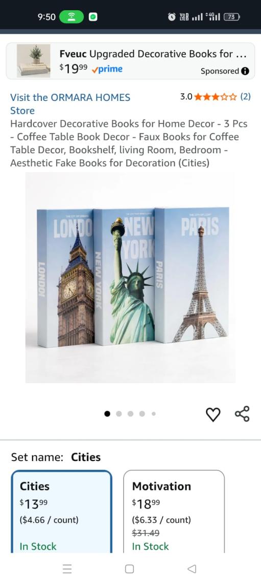 | 3 | 3 | Hardcover Decorative Books for Home Decor - 3 Pcs - Coffee Table Book Decor - Faux Books for Coffee Table Decor, Bookshelf, living Room, Bedroom - Aesthetic Fake Books for Decoration (Cities) | USA | 1311837 |
