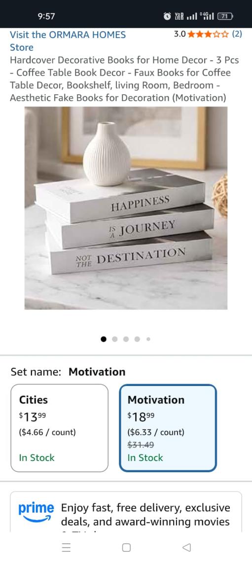 | 3 | 2 | Hardcover Decorative Books for Home Decor - 3 Pcs - Coffee Table Book Decor - Faux Books for Coffee Table Decor, Bookshelf, living Room, Bedroom - Aesthetic Fake Books for Decoration (Motivation | USA | 1311843 |