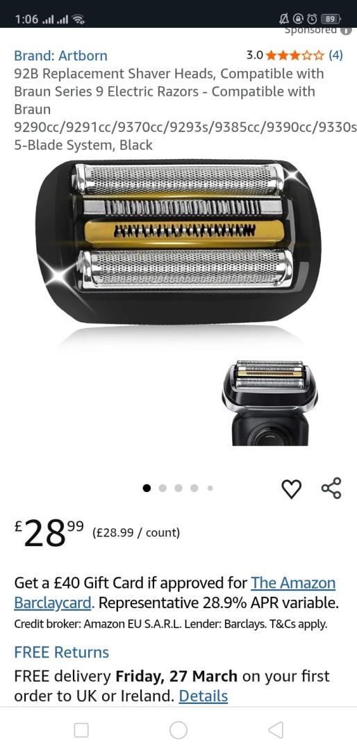 | 1 | 1 | "①Braun Series 9 ②Braun Series 9 Replacement Shaver Heads" | UK | 1353063 |