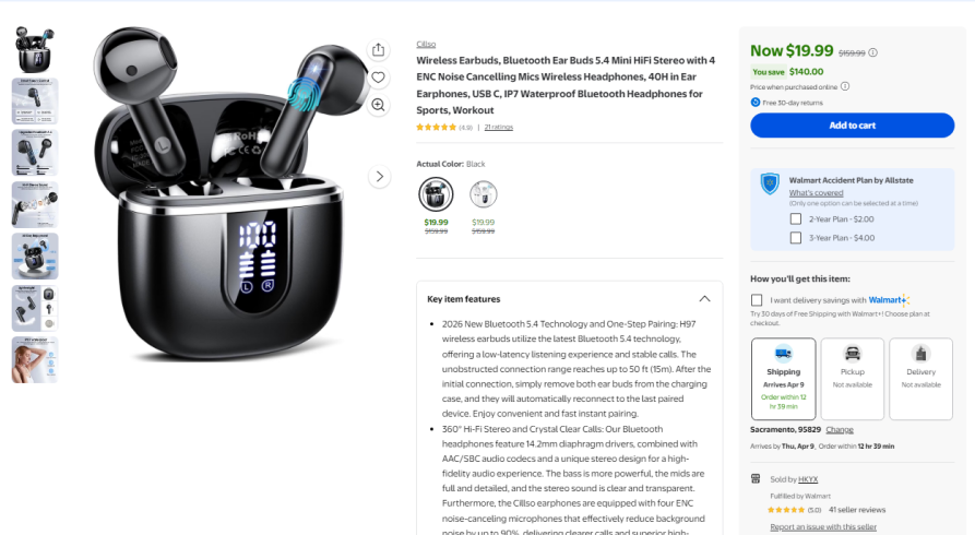 | 2 | 2 | 关键词:Wireless Earbuds Bluetooth Ear Buds 5.4 40H Black(page 1) | WALMART USA | 1369659 |