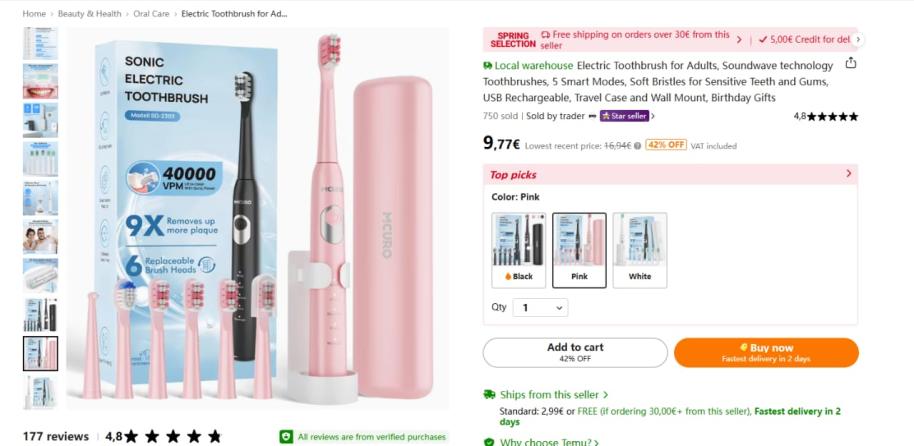 | 2 | 2 | Elektrische Zahnbürste | TEMU REVIEW DE | 1369674 |