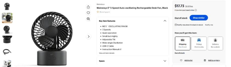| 2 | 2 | 5'' Desk Fan | WALMART USA | 1369678 |