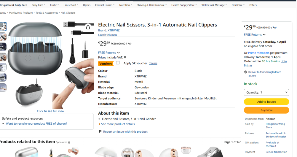 | 2 | 2 | elektrischer nagelknipser | DE | 1369697 |
