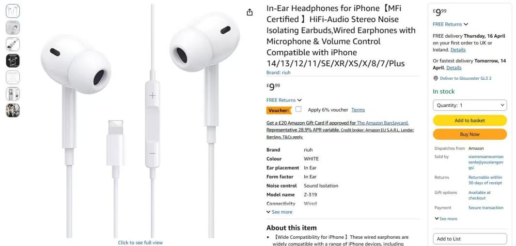 | 4 | 4 | riuh In-Ear Headphones for iPhone | UK | 1383484 |