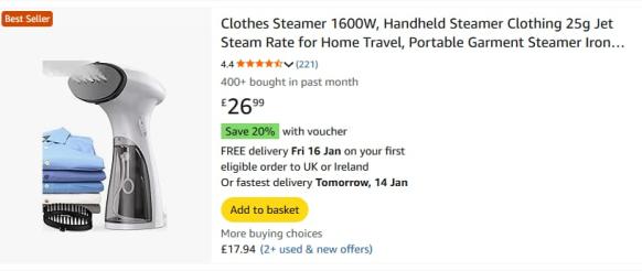 | 2 | 2 | Keyword:clothes steamer 1600W | UK | 1258981 |