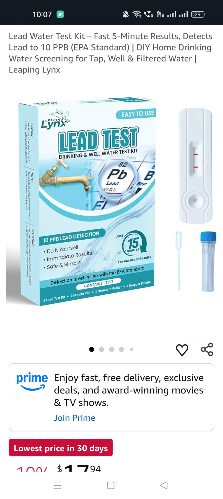 Lead Water Test Kit – Fast 5-Minute Results, Detects Lead to 10 PPB (EPA Standard) | DIY Home Drinking Water Screening for Tap, Well & Filtered Water | Leaping Lynx
