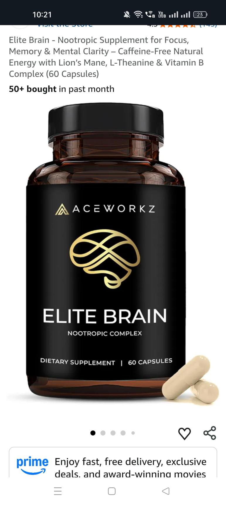Elite Brain - Nootropic Supplement for Focus, Memory & Mental Clarity – Caffeine-Free Natural Energy with Lion’s Mane, L-Theanine & Vitamin B Complex (60 Capsules)