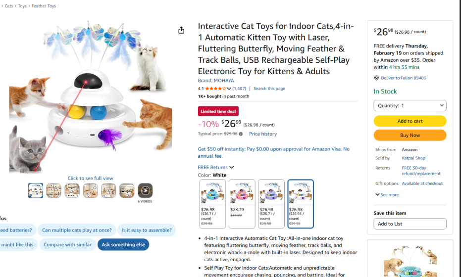 | 4 | 4 | interactive cat toy | USA | 1310095 |