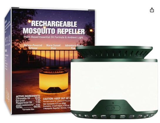 | 3 | 3 | Mosquito Repellent Outdoor Patio, Rechargeable Mosquito Repeller with Plant-Based Cartridges, Fan-Powered Diffusion, 2 Refills Included, Green, M | USA | 1333617 |