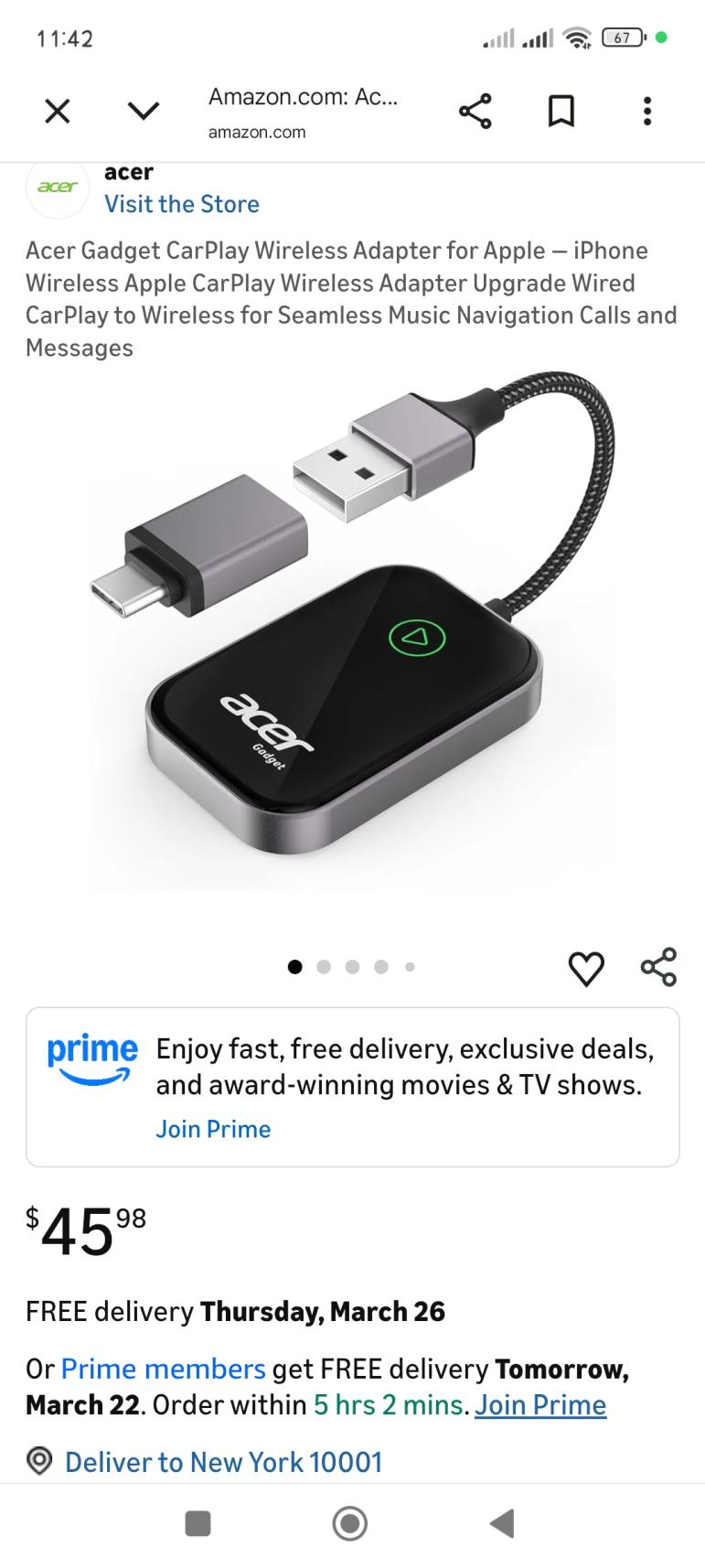 | 1 | 1 | Acer carplay wireless adapter | USA | 1351317 |