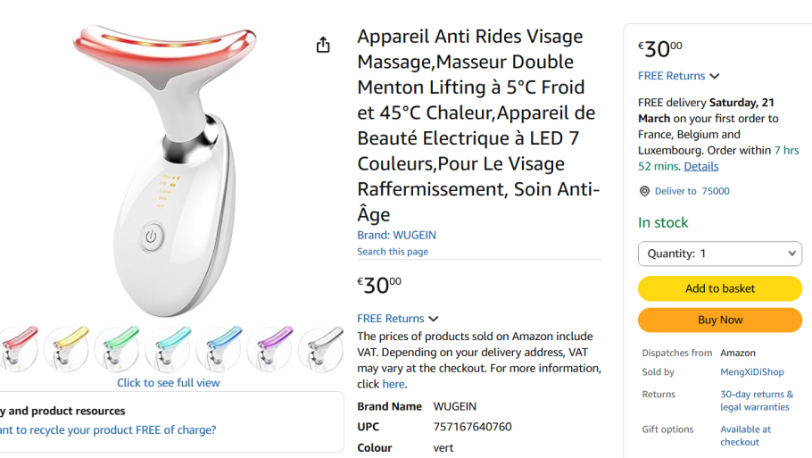 | 3 | 2 | Appareil Anti Rides Visage Massage | FR | 1361023 |
