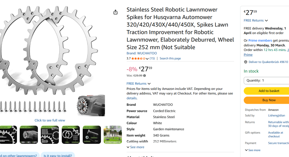 | 3 | 3 | mähroboter husqvarna spikes ;spikes für husqvarna mähroboter | DE | 1361021 |