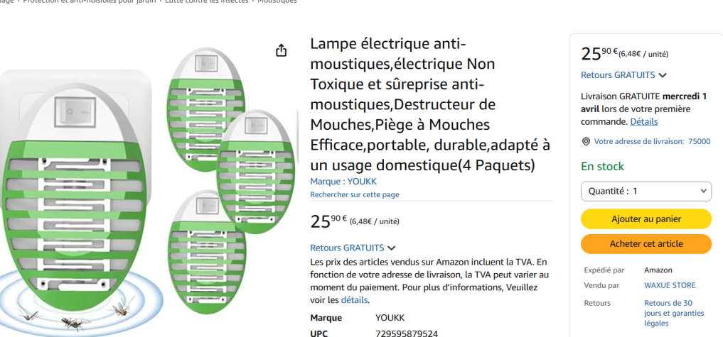 | 6 | 6 | lampe électrique anti-moustiques | FR | 1361046 |