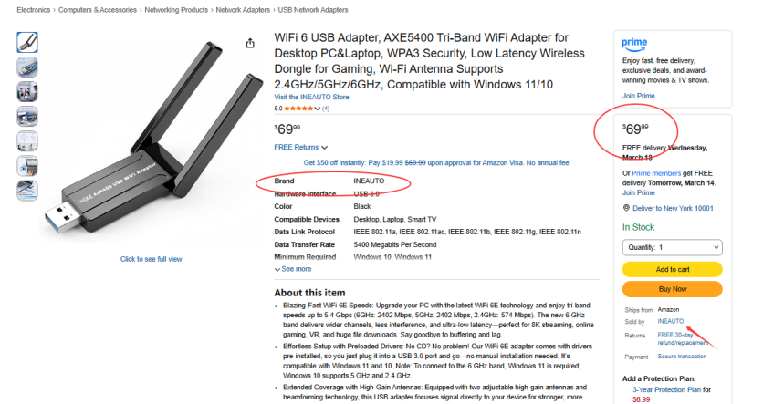 | 4 | 4 | AXE5400 Tri-Band WiFi Adapter for Desktop ( tax and pp not cover ) | NO REVIEW USA | 1344798 |