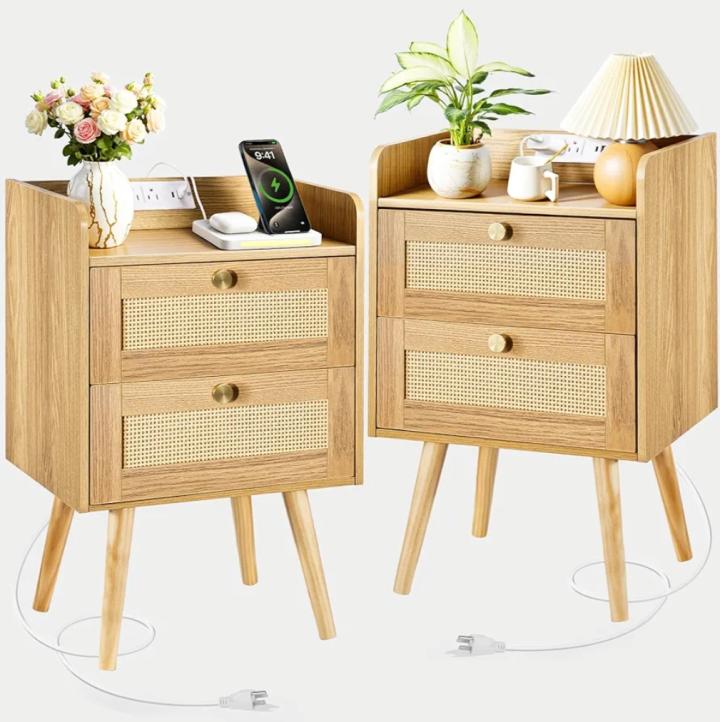 | 1 | 1 | Rattan Nightstands Set of 2, Night Stand with Charging Station & PE Rattan Decor Drawer ($30 less) | USA | 1282815 |