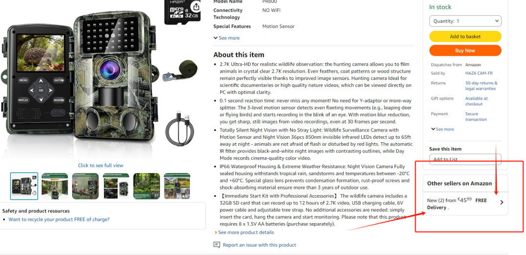| 10 | 10 | caméra chasse vision nocturne | FR | 1282124 |