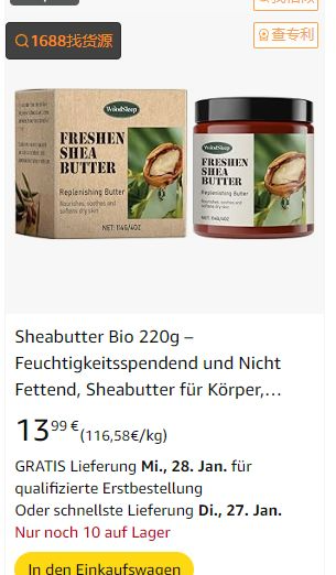 | 1 | 1 | Sheabutter Bio 220g | DE | 1280628 |