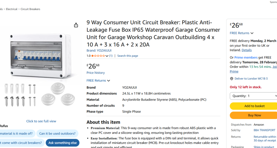 | 6 | 6 | consumer unit 9 Way | UK | 1341043 |
