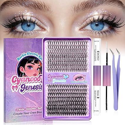 Lash Clusters Kit 320Pcs 30D+40D D Curl Individual Lashes 10-16mm Fluffy Wispy False Eyelashes with Lash Bond & Seal Tweezers Waterproof DIY Eyelash Extensions for Self Application at Home