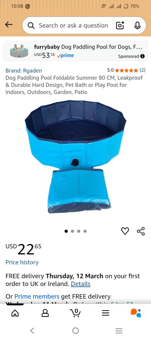 | 2 | 2 | dog paddling pool foldable summer 80 cm | UK | 1335404 |