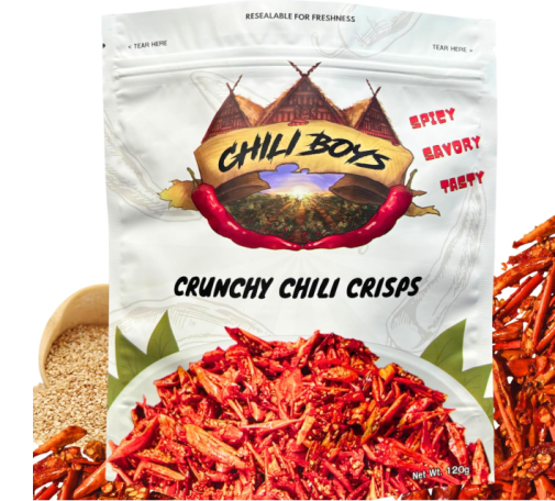 | 5 | 5 | Chili Boys Spicy Crunchy Chili Crisps with Sesame Seeds | Crispy Fried Chili Snack and Food Topper | Vegan | Gourmet Savory Pepper Chips | Ready to Eat | Resealable Bag | 120g | USA | 1322087 |