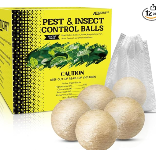 Natural Peppermint Spider Repellent Indoor Pet Safe & Ant Control Balls,Rodent Repellent for Car Engine, Home Storage, Fresh Mint Scent, Safe for Kids and Pets