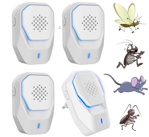 Ultrasonic for Mice, Ultrasonic Mosquito Repellent, Electromagnetic Ultrasonic Repellent, Effective Repellent for Mosquitoes, Mice, Ants, Flies, Spiders -100% Professional and Effective (Pack of 4)