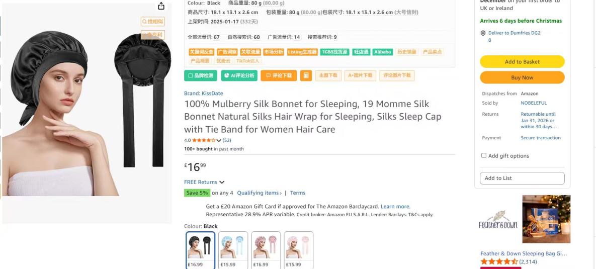 | 5 | 5 | silk bonnet for sleeping | UK | 1260161 |