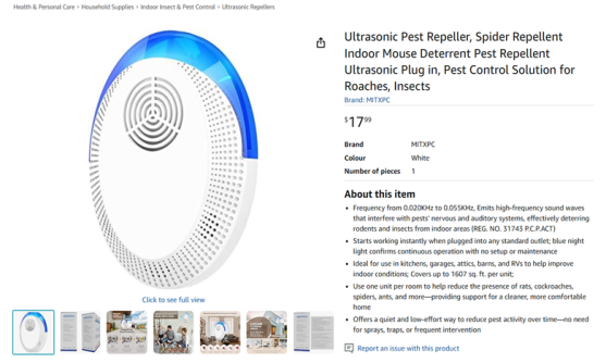 | 1 | 1 | https://www.amazon.ca/Ultrasonic-Repeller-Repellent-Deterrent-Rodents/dp/B0GK5HX6XX | CA | 1313450 |