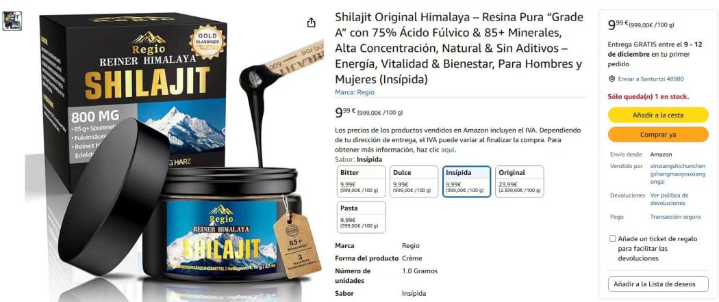 | 1 | 1 | Shilajit original Himalaya | NO REVIEW ES | 1164480 |