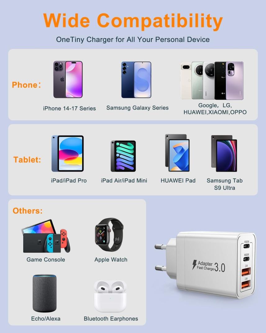 | 1 | 1 | EU plug travel adapter charger, 65W European wall adapter | UK | 1184380 |