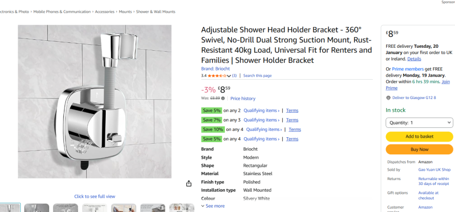 | 4 | 4 | Shower Head Holder | UK | 1265031 |