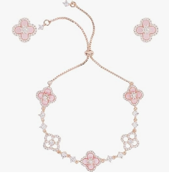 | 1 | 1 | 18K Gold Plated Clover Bracelet with Cubic Zirconia & Flower Stud Earrings | USA | 1280841 |
