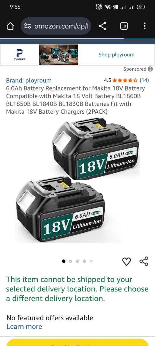 | 2 | 2 | makita 18v battery | USA | 1295106 |