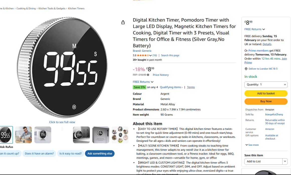 | 3 | 2 | Digital Kitchen Timer, Pomodoro | UK | 1311023 |
