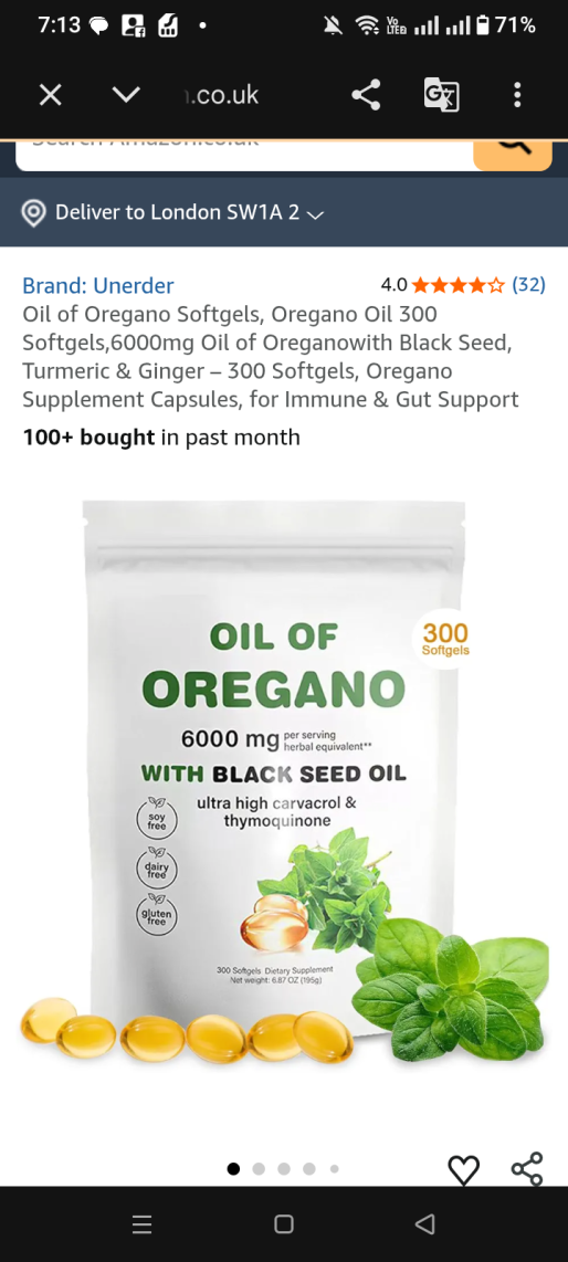 | 1 | 1 | Oil of Oregano Softgels, Oregano Oil 300 Softgels | UK | 1328443 |