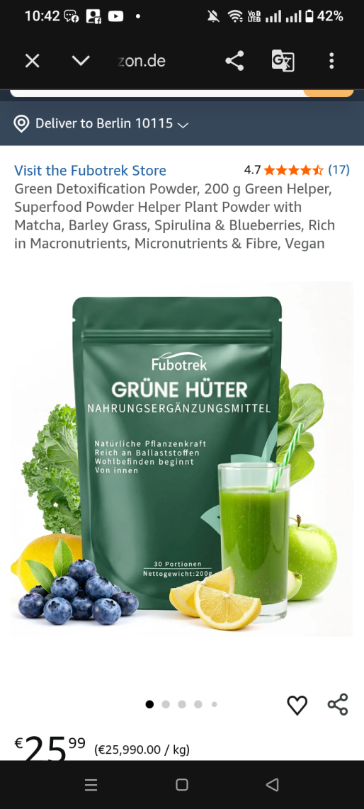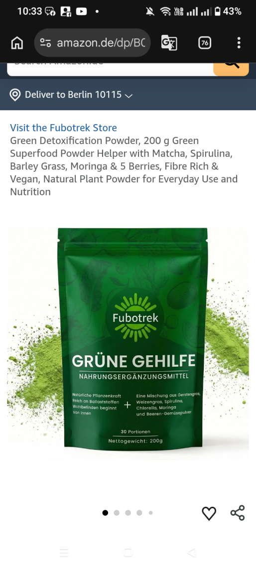 | 1 | 1 | grüne helfer entgiftungspulver | DE | 1384266 |