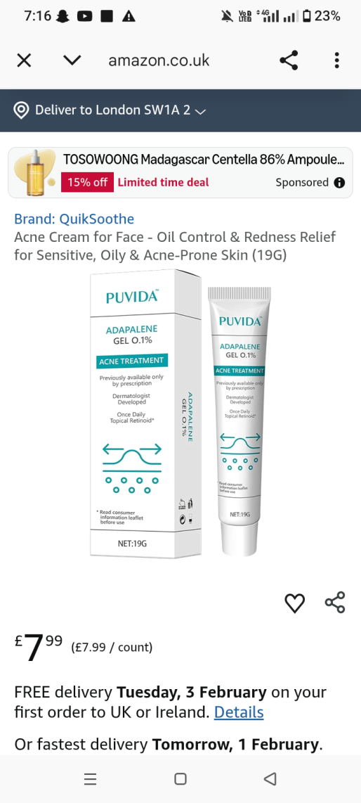 | 1 | 1 | Acne Cream for Face 12g | UK | 1291733 |