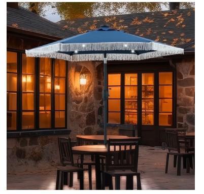 | 1 | 1 | Ainfox 7.5 ft Boho Fringe Patio Umbrella with LED Solar Lights,Waterproof Outdoor Tassels Umbrella for Deck, Table, Garden, Navy Blue | WALMART USA | 1251668 |