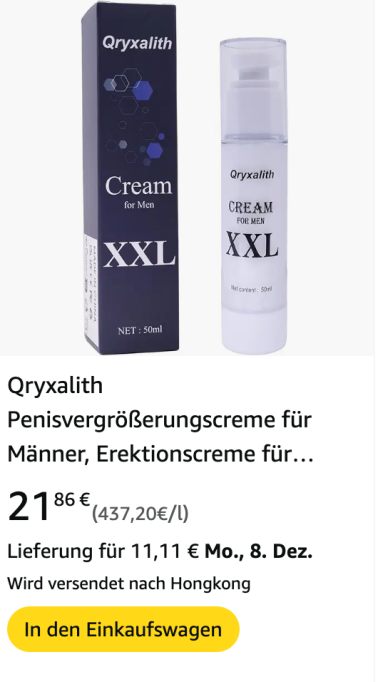 | 1 | 1 | Qryxalith Penisvergrößerungscreme für Männer | DE | 1251438 |