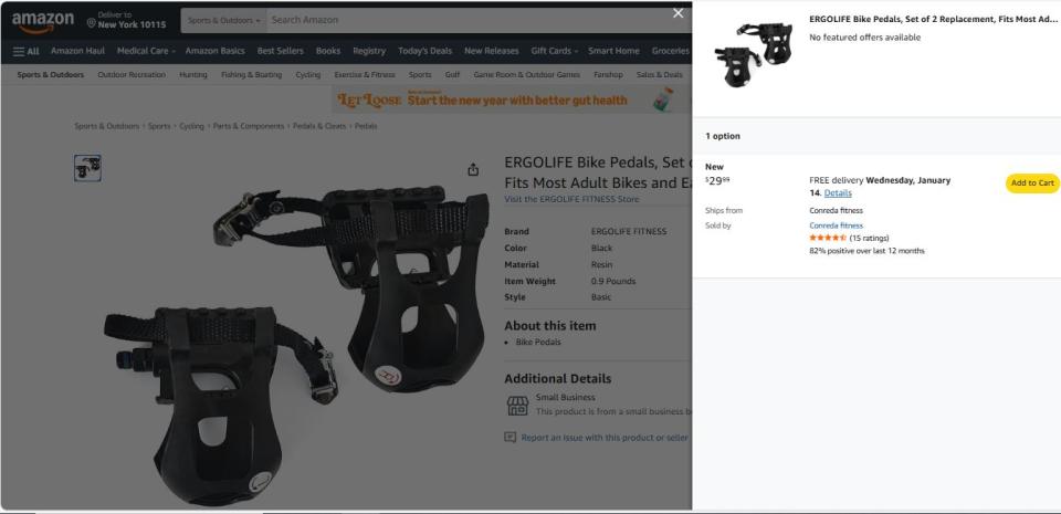 | 1 | 1 | ERGOLIFE Bike Pedals | USA | 1242635 |